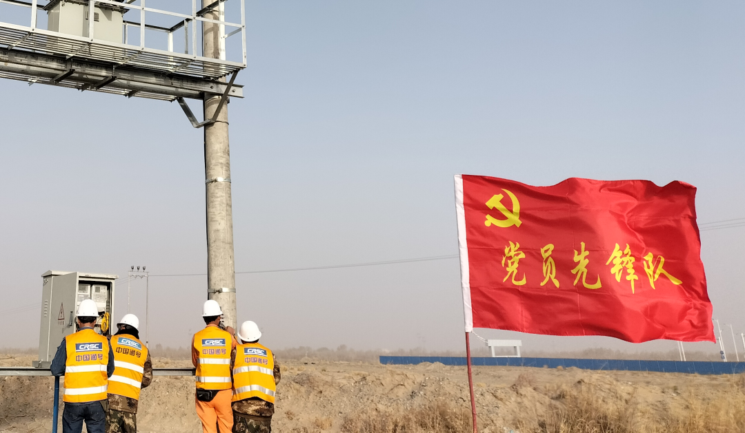 在沙漠边缘建铁路,是一项极具世界挑战性的工程。项目现场地处塔克拉玛干沙漠腹地,海拔高、温差大,自然环境极其恶劣。作为国家高铁建设的“国家队”和主力军,中国通号坚决扛起落实国家战略的政治任务,把党史学习教育成果转化为打造精品、智能、绿色、安全工程的动力,组建“党员先锋岗”和临时党支部,将党建与项目建设、团队建设深度融合,全力保障和若铁路项目顺利建设,践行央企的使命担当。