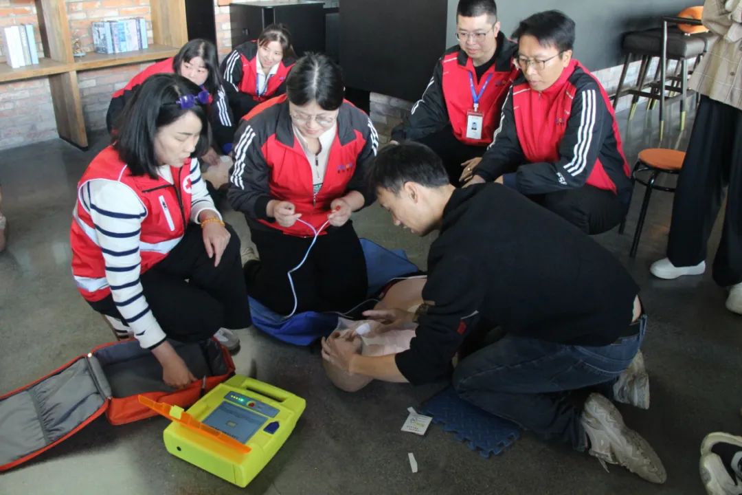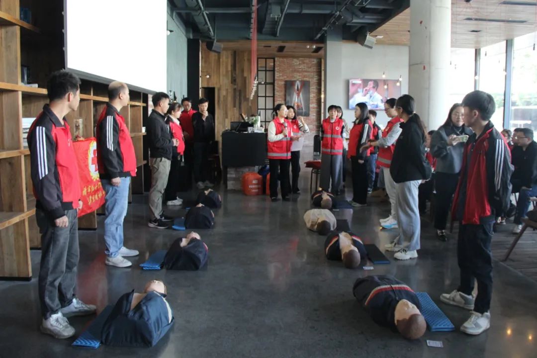 活动采取“理论培训+实操演练”相结合的方式开展,红十字救护培训讲师和助教通过情景式教学、现场教具演示、案例分析等多样化方式,详细讲解了心肺复苏术、自动体外除颤仪(AED)的使用、气道异物梗阻的急救处理、止血包扎技术等急救知识技能。