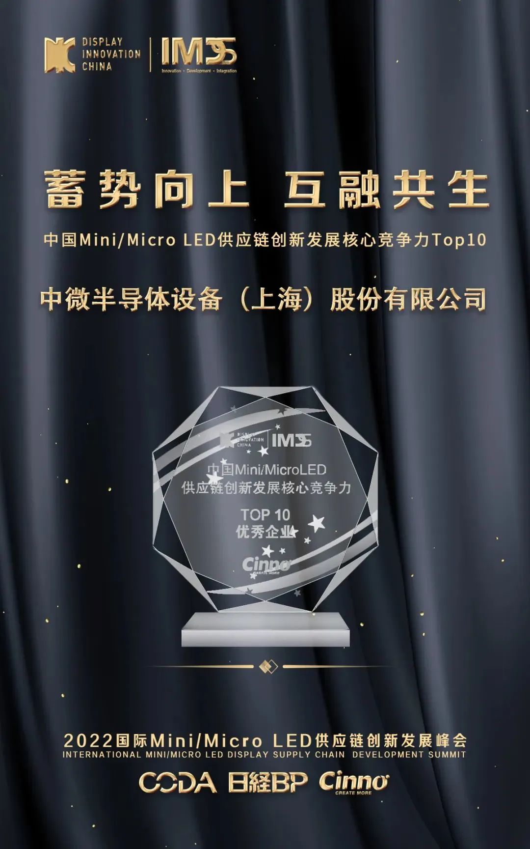 以“蓄势向上 互融共生”为主题的首届“国际Mini/MicroLED供应链创新发展峰会”在2022年12月26日-12月28日以线上直播的形式顺利举行。本次活动是继2021年举办了首届Mini/MicroLED供应链创新发展峰会后,中国光学光电子行业协会液晶分会联合中国知名产业咨询顾问公司CINNO Research主办的第二届Mini/Micro LED显示的主题峰会。