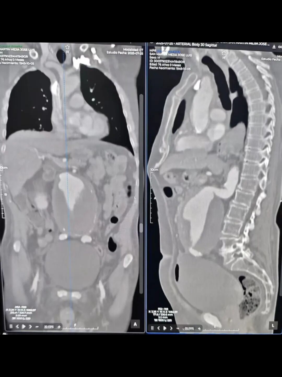 活动期间,在拜访墨西哥城拉腊兹国家医疗中心时,面对一例76岁男性高难度腹主动脉瘤患者,经诊断存在入路扭曲、短瘤颈且呈双重90度的复杂情况。若采用常规腹主动脉支架进行治疗,支架会难以通过病变区域,且难以贴合扭曲的近端健康锚定区,可能增加Type Ia内漏或支架移位等远期风险。当地医生团队在Nilo教授的指导下,根据术前影像及测量结果制定手术方案,选择使用 Aorfix?产品进行治疗。手术中结合Pushing Up技术和Socket旋转技术,成功应对复杂腔内环境并完成植入。术后造影结果显示,支架形态良好,腹主动脉血流通畅,无内漏,手术过程顺利,充分体现了 Aorfix?产品在应对高度扭曲、短瘤颈时出色的贴合性能,以及其Low Profile设计所带来的显著优势。