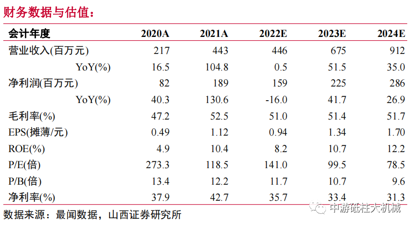 盈利预测、估值分析和投资建议:制造企业对工业机器人的需求增长是长期趋势,公司作为国内头部谐波减速器生产商,有望分享行业扩容红利,规模化扩产稳步推进、成本优势逐步显现。考虑到公司短期内受到行业竞争加剧叠加需求疲软的影响较大,下调盈利预测,预计公司2022-2024年归母净利润分别为1.6/2.3/2.9亿元(调整前为2.6/3.5/4.6亿元),同比分别增长-16.0%/41.7%/26.9%,对应EPS分别为0.9/1.3/1.7元,对应于3月1日收盘价133.00元,PE分别为141.0/99.5/78.5倍,维持“买入-A”的投资评级。