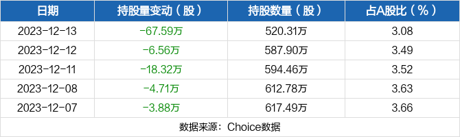 12月13日,绿的谐波被沪股通减持67.59万股,已连续5日被沪股通减持,共计101.06万股,最新持股量为520.31万股,占公司A股总股本的3.08%。
