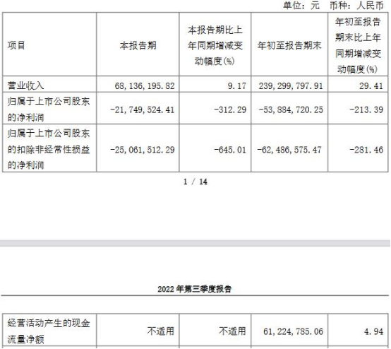 第三季度,公司营业收入6813.62万元,同比增长9.17%;归属于上市公司股东的净利润-2174.95万元,同比减少312.29%;归属于上市公司股东的扣除非经常性损益的净利润-2506.15万元,同比减少645.01%。