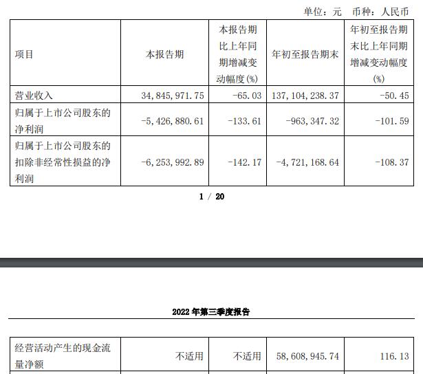 今年第三季度,奥福环保实现营业收入3484. 60万元,同比减少65.03%;归属于上市公司股东的净利润-542.69万元,同比减少133.61%;归属于上市公司股东的扣除非经常性损益的净利润-625.40万元,同比减少142.17%。