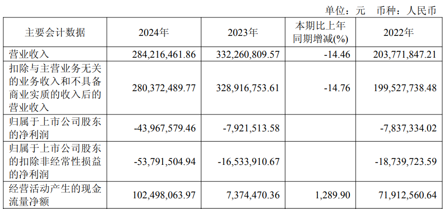 2022年至2024年,奥福科技实现营业收入分别为2.04亿元、3.32亿元和2.84亿元;归属于上市公司股东的净利润分别为-783.73万元、-792.15万元和-4396.76万元;归属于上市公司股东的扣非净利润分别为-1873.97万元、-1653.39万元和-5379.15万元;经营活动产生的现金流量净额分别为7191.26万元、737.45万元和1.02亿元。
