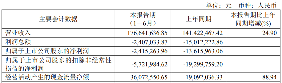 中国经济网北京9月18日讯奥福科技(688021.SH)近日披露2025年半年度报告。2025年上半年,公司实现营业收入1.77亿元,同比增长24.90%;归属于上市公司股东的净利润为-241.53万元,上年同期为-1361.60万元;归属于上市公司股东的扣非净利润为-572.20万元,上年同期为-1929.98万元;经营活动产生的现金流量净额为3607.26万元,同比增长88.94%。