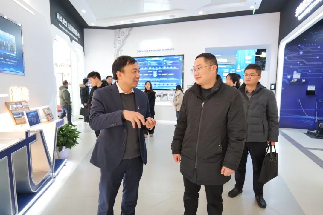 2026年1月6日,安徽省天长市委组织部副部长罗金朱一行莅临安恒信息参观调研,滨江区委组织部副部长、区直机关工委专职副书记赵铮,物联网产业园党委委员、发展服务中心副主任周益方陪同参观,安恒信息党委书记、总经理张小孟热情接待。