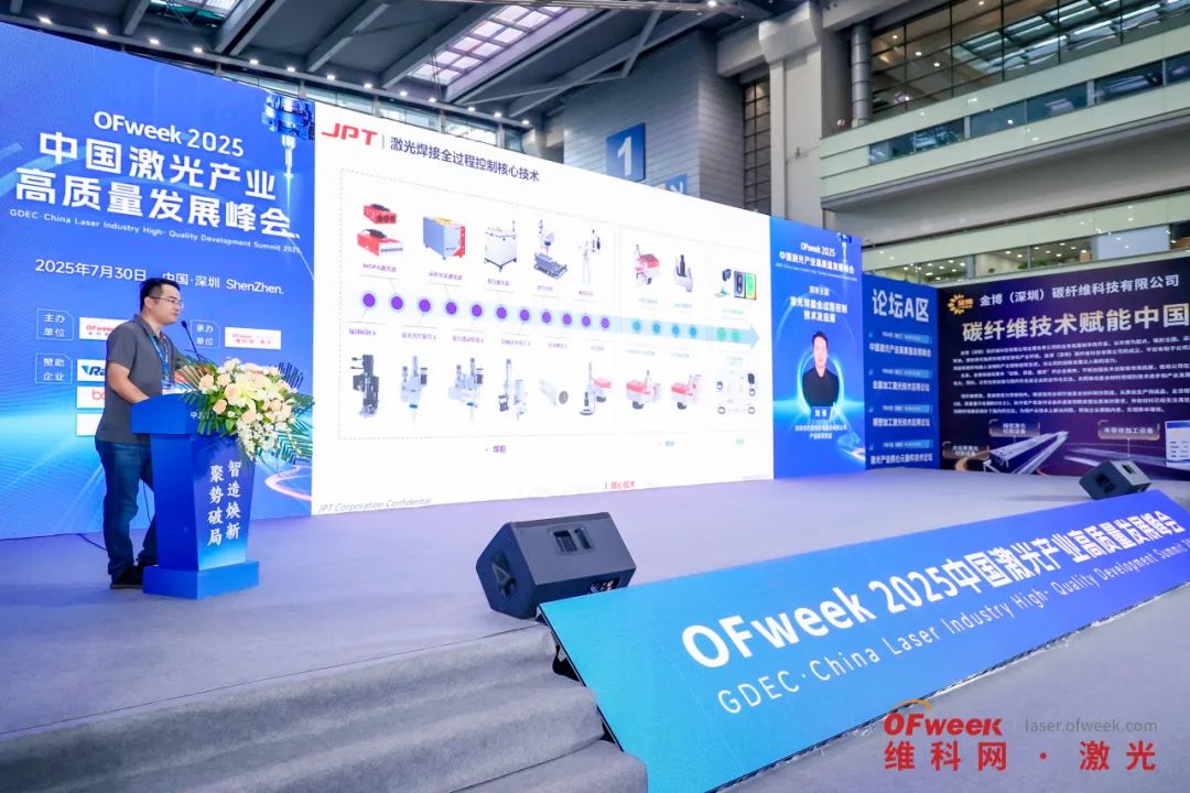 展会同期举办的“中国激光产业高质量发展峰会”上,杰普特研发经理刘伟发表了题为《激光焊接全过程控制技术及应用》的主题演讲。刘伟经理系统阐释了杰普特在焊前-焊中-焊后全流程控制技术上的工业化突破。该技术通过光束整形、动态熔深调控及AI质检等硬核创新,已在新能源、3C电子领域实现规模化落地,不仅显著提升产品品质,更以智能化推动产业向高效、绿色方向发展。