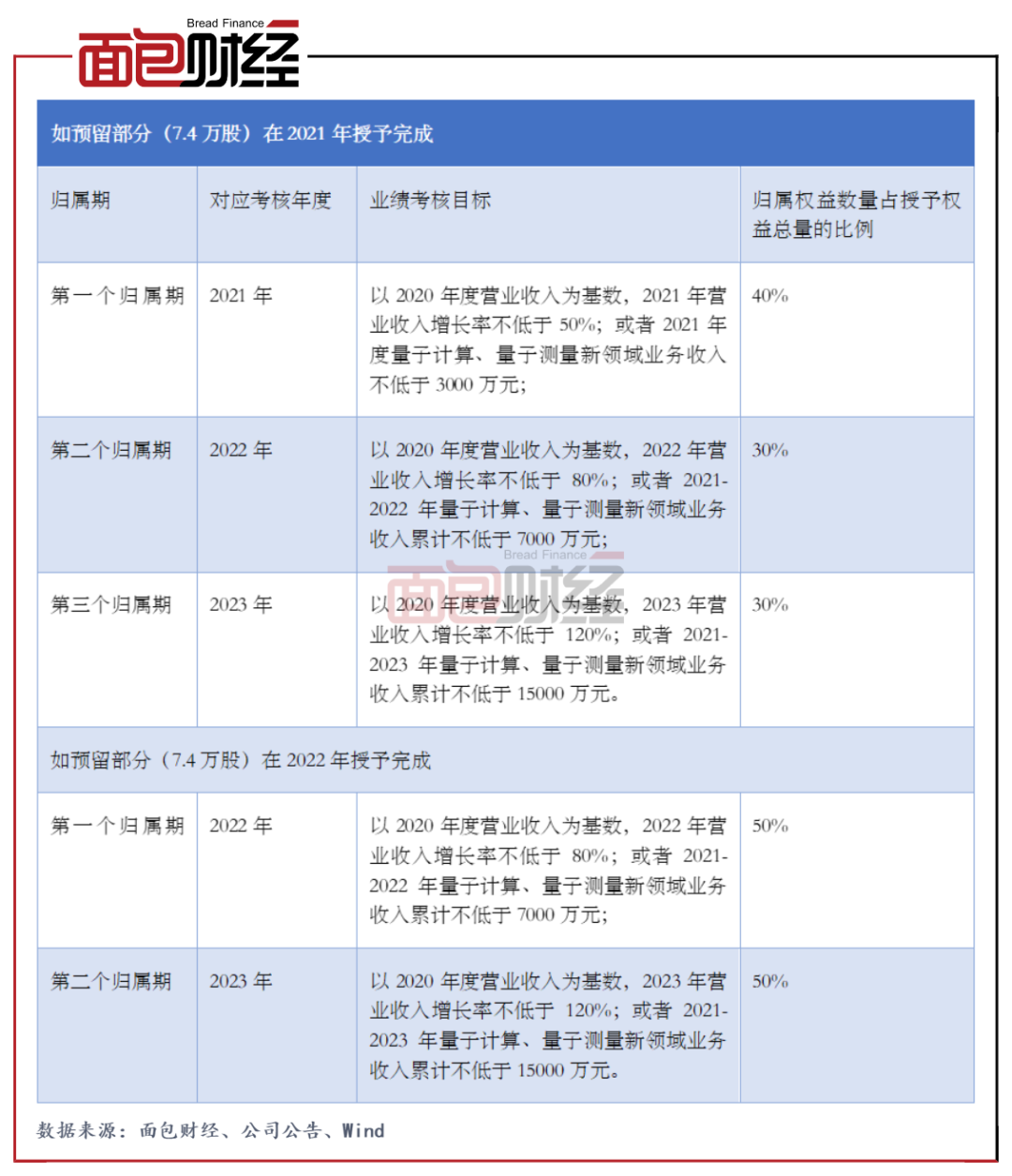 另外,股权激励计划授予的限制性股票在激励对象满足相应归属条件后将按约定比例分次归属,对应的业绩考核目标和归属权益数量的占比如下所示: