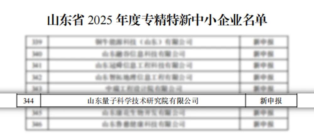 近日,山东省工业和信息化厅正式公布2025年度山东省“专精特新”中小企业认定名单。国盾量子子公司——山东量子科学技术研究院有限公司(以下简称“山东量科”)成功通过认定。
