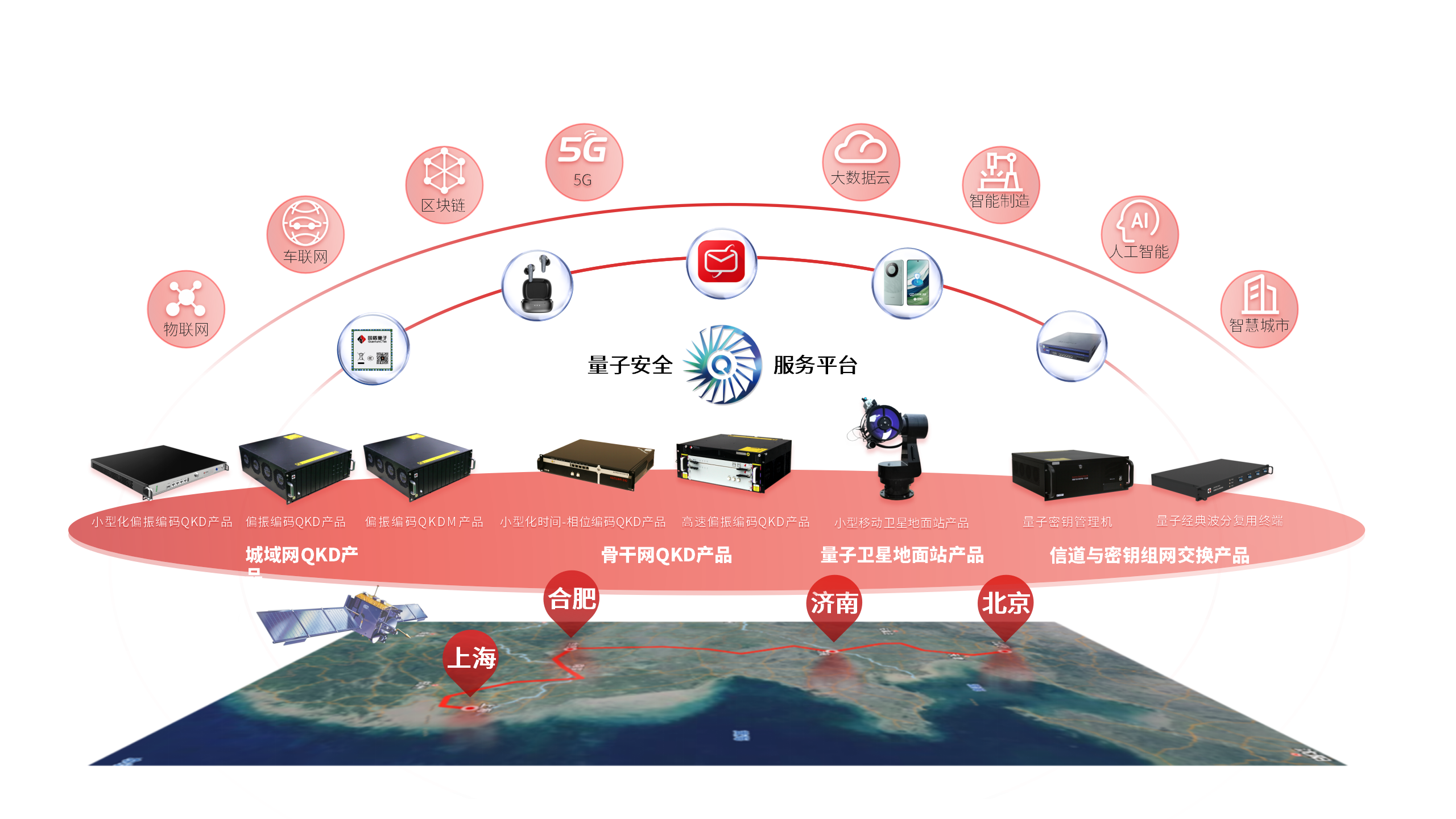 作为国内量子通信领军企业,山东量科曾牵头及承担国家“863”计划信息技术领域主题项目、省级重大科技项目若干项。现可为各类光纤量子保密通信网络及星地一体广域量子保密通信网络建设提供软硬件产品,为政务、金融、电力等行业和领域提供组网及量子安全应用解决方案。