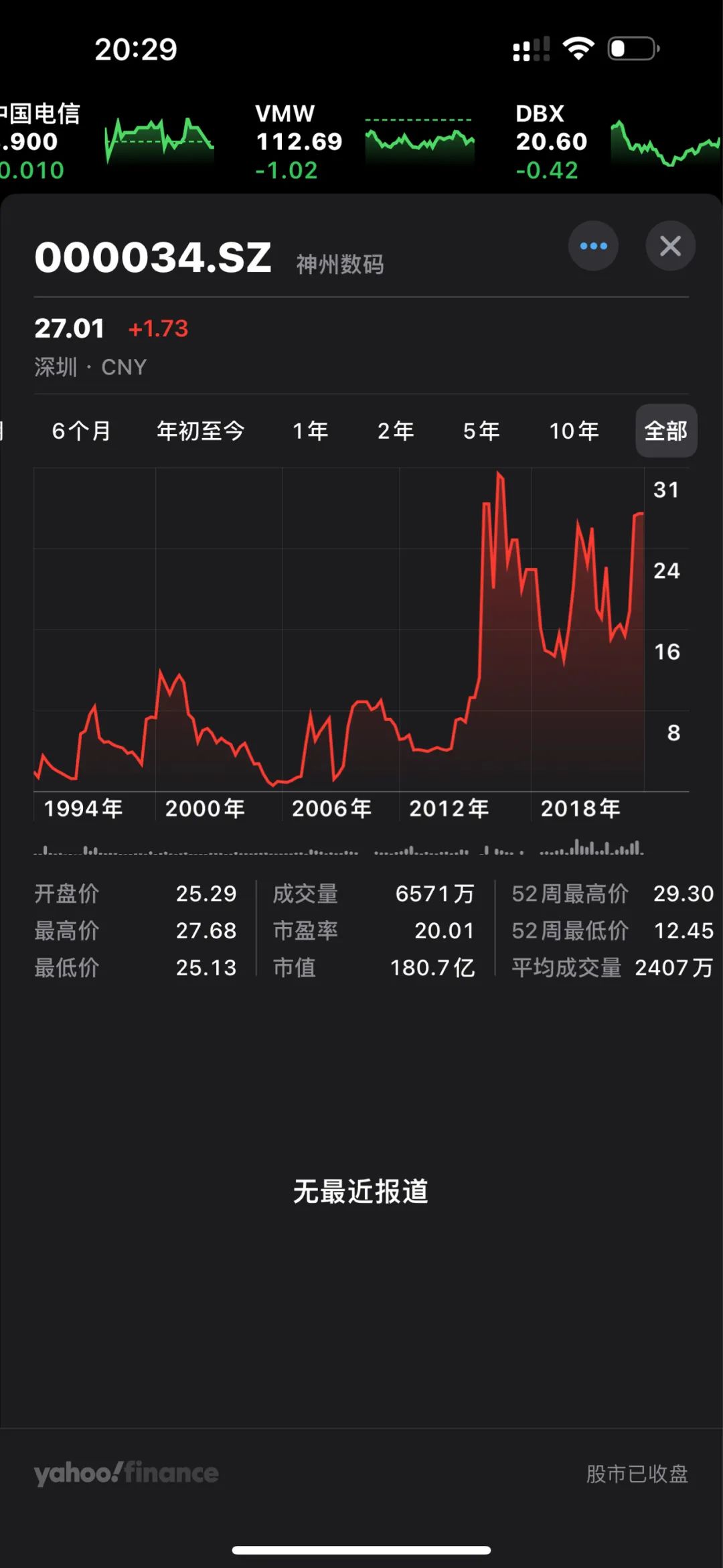 神州数码目前市值 180.7 亿:
