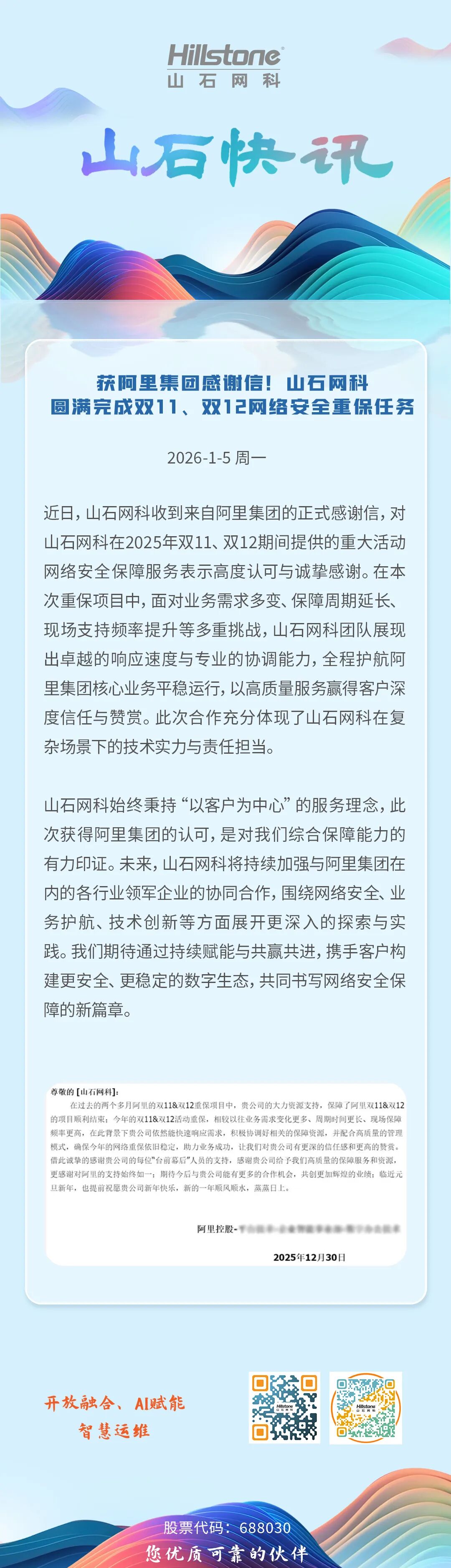 获阿里集团感谢信!山石网科圆满完成双11、双12网络安全重保任务