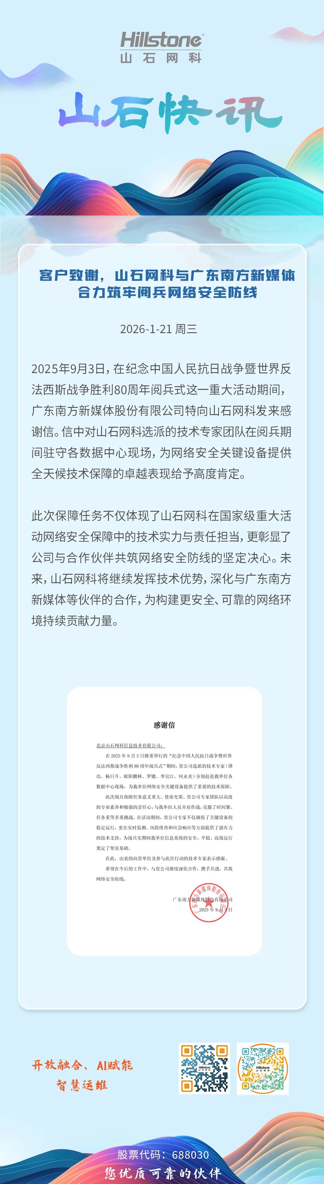 客户致谢|山石网科与广东南方新媒体合力筑牢阅兵网络安全防线