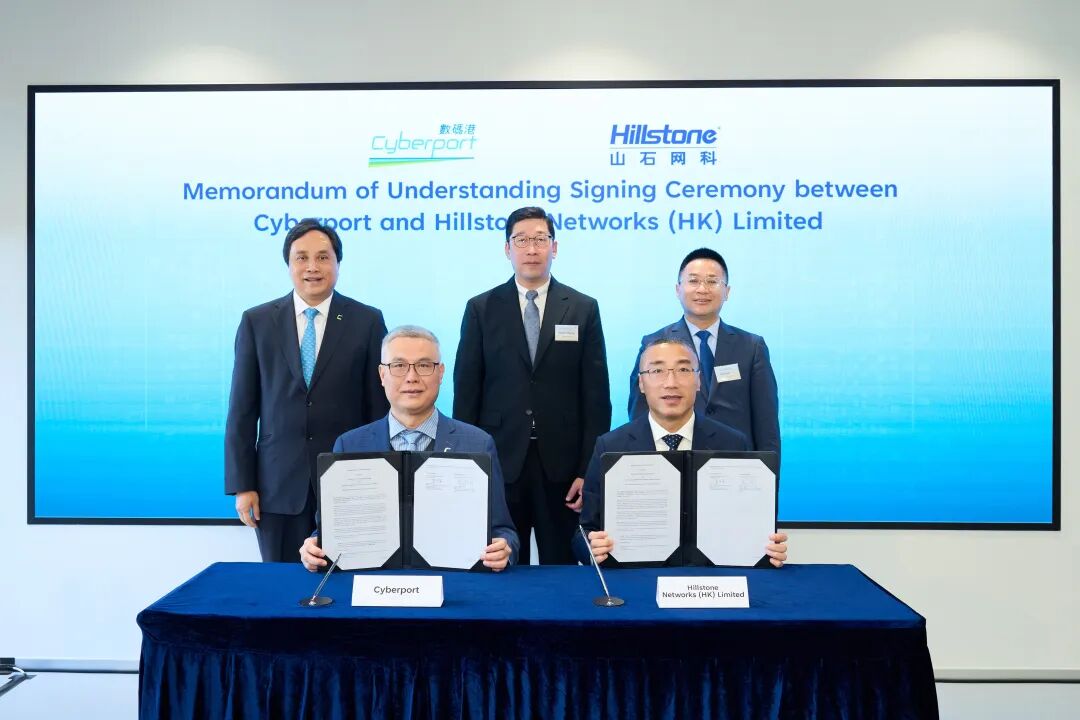 本次合作备忘录签署仪式由香港特区政府数字政策办公室副数字政策专员(数字基建)张宜伟、山石网科董事长兼首席执行官叶海强、香港数码港管理有限公司主席陈细明出席见证,并由山石网科副总裁、国际事业群负责人赵京玺,香港数码港管理有限公司行政总裁郑松岩博士共同签署。