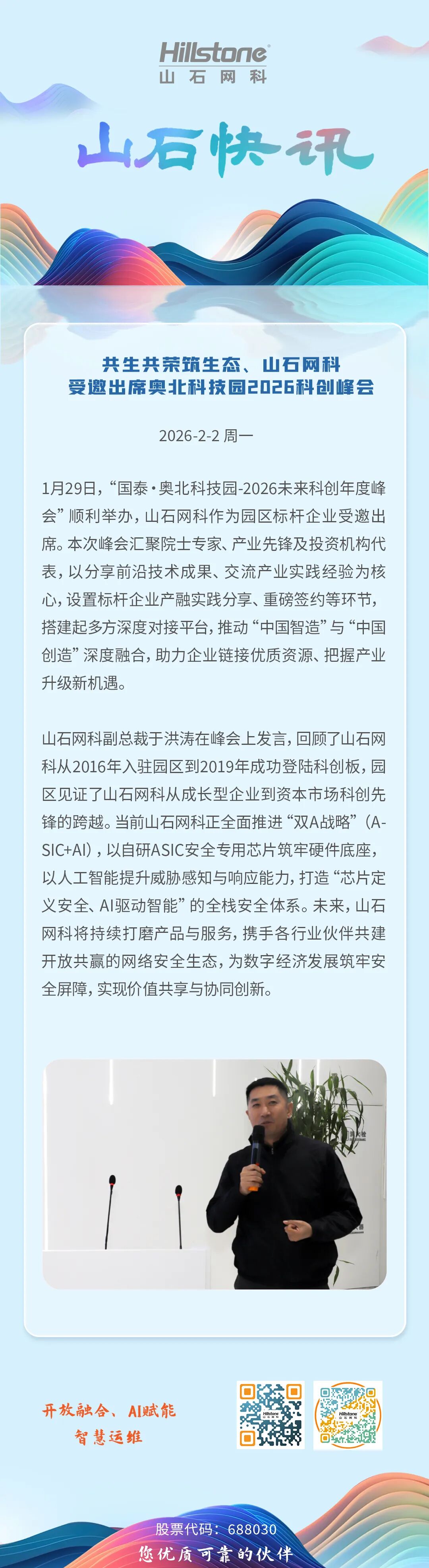 共生共荣筑生态、山石网科受邀出席奥北科技园2026科创峰会