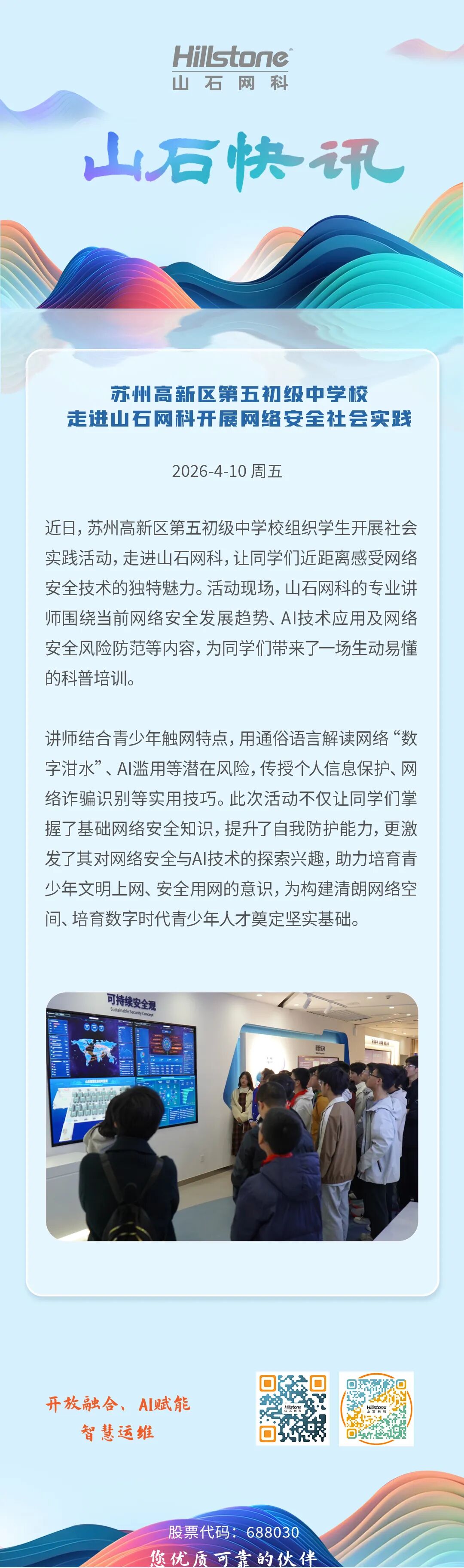 苏州高新区第五初级中学校走进山石网科开展网络安全社会实践