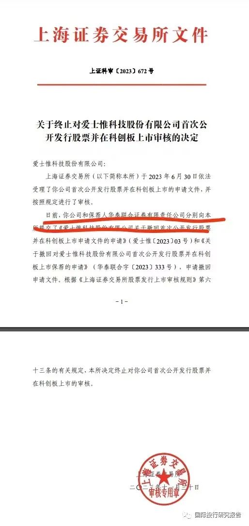 上交所网站信息显示,主营光伏逆变器的爱士惟已经终止IPO,有意思的是,这家公司2023年6月30日才提交IPO,7月28日收到上交所问询之后就没有过任何的信息更新,直到11月30人终止,上交所敲钟之路就这样结束了。