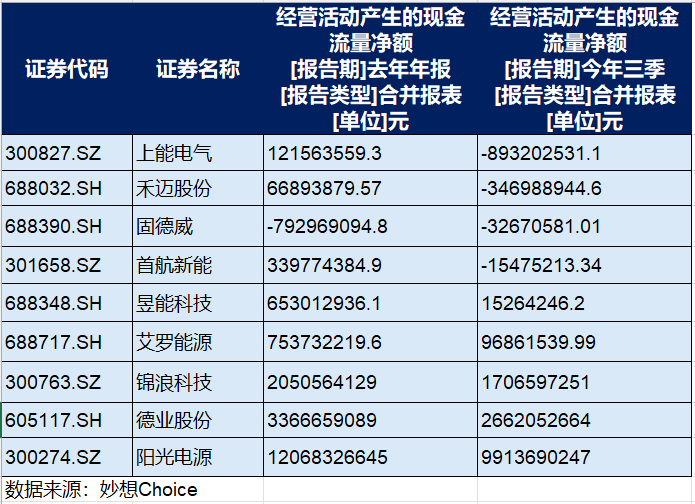 经营性现金流是另一条必须重视的信号。禾迈前三季度经营活动产生的现金流量净额为-3.47亿元,同比下降幅度超过五倍,公司在季报中解释称,主要系“优化筹资结构、以票据贴现归还供应商款项”所致。