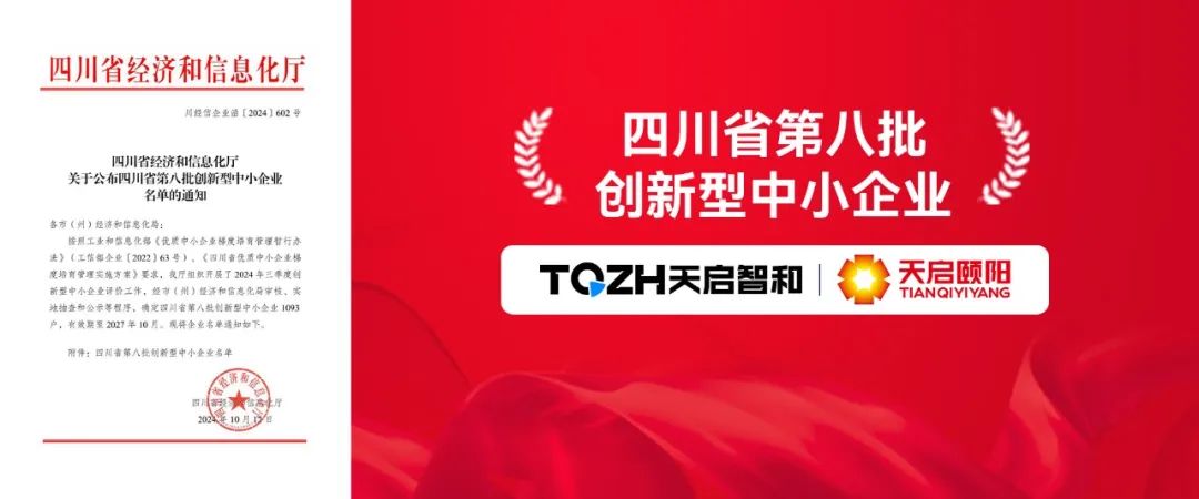 江油天启智和科技有限公司与江油天启颐阳新材料有限公司(原江油天启熠阳新材料有限公司)成功入选四川省第八批创新型中小企业名单。
