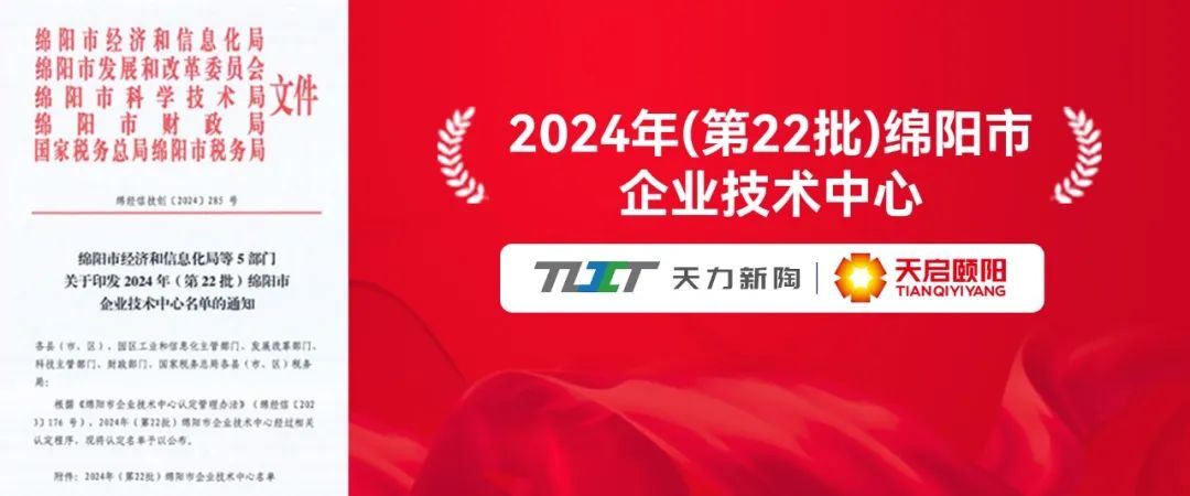 江油天力新陶碳碳材料科技有限公司与江油天启颐阳新材料有限公司成功入选2024年(第22批)绵阳市企业技术中心名单。