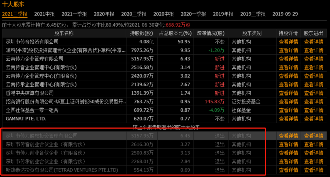 除了这两个股东通过大宗交易减持外,去年三季报显示,传力投资、传音创业、传力创业、传承创业以及新政泰达均已退出十大股东,以及社保也在减持公司股份。