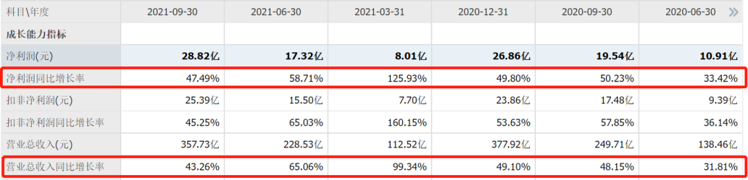 2021年上半年,传音控股实现营收228.3亿、同比增长65.06%,归母净利润17.32亿、同比增长58.71%。去年前三季度,营收357.73亿、同比增长43.26%,归母净利润28.82亿、同比增长47.49%。