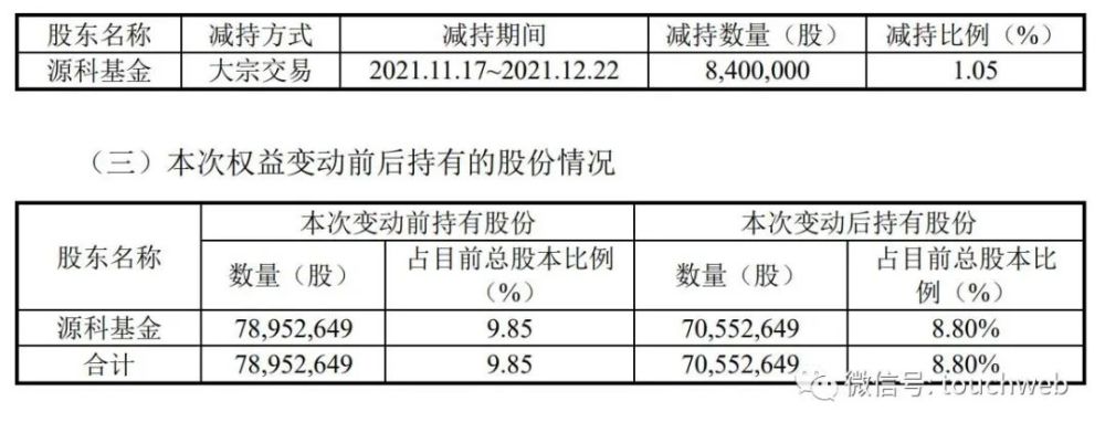 可发现,源科股权持股下降1.39个百分点,其他几家也出现不同程度减持。