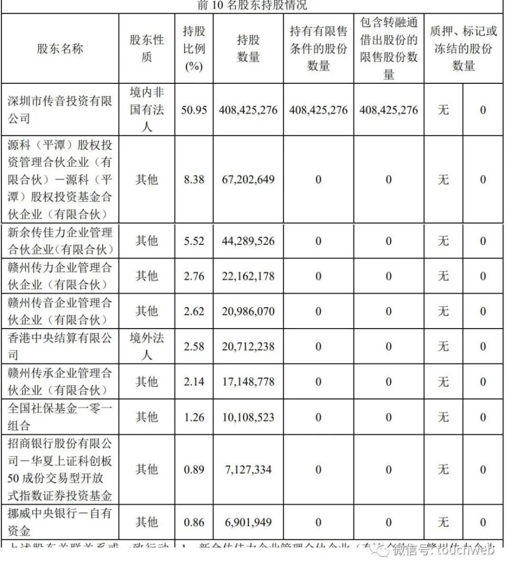 新余传佳力企业管理合伙企业(有限合伙)持股为5.51%,赣州传力企业管理合伙企业(有限合伙)持股为2.76%,赣州传音企业管理合伙企业(有限合伙)持股为2.61%,赣州传承企业管理合伙企业(有限合伙)持股为2.13%;