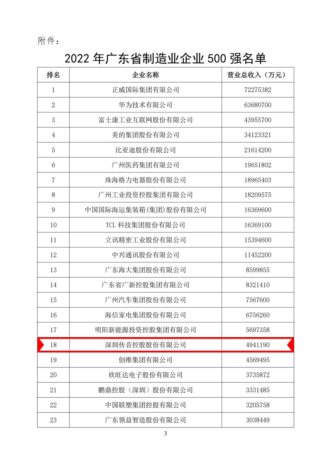 12月28日,广东省制造业发展年会暨广东省制造业500强企业峰会在广州举行。会上发布了《2022年广东省制造业500强企业研究报告》,传音控股凭借先进的智能制造水平荣膺“2022广东省制造业企业500强”第18位,排名较上年上升2位,行业竞争力稳步提升。