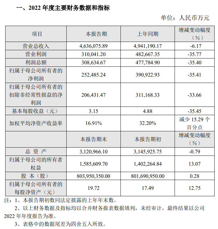 2 月 24 日消息,传音控股今日发布了 2022 年度业绩快报,2022 年实现营业总收入 463.61 亿元,同比下降 6.17%;净利润 25.25 亿元,同比下降 35.41%。