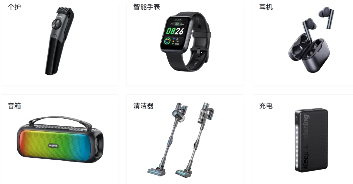 以手机产品为锚点,传音首先推出了数码配件品牌Oraimo,产品包括TWS蓝牙耳机、智能手表、蓝牙音箱、移动电源、吸尘器等。