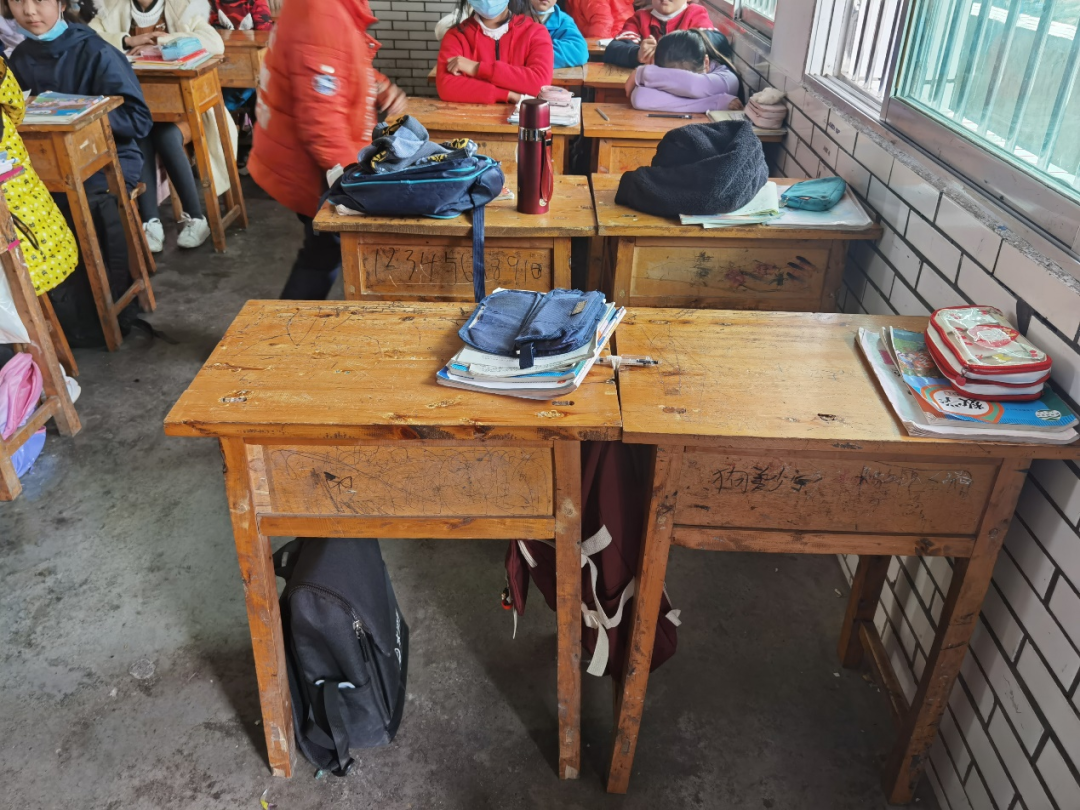 八邦乡的孩子们使用传音捐赠的课桌椅和体育包