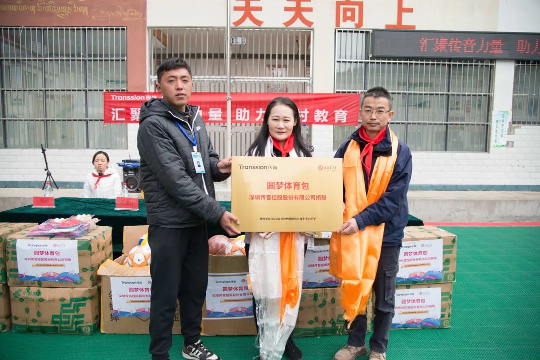 传音携手爱德基金会为四川甘孜州德格县八邦乡中心小学捐赠圆梦体育包