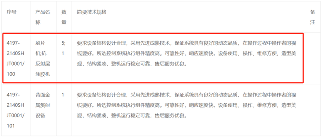 而今年3月积塔半导体发布一份招标信息显示,刷片机未5台,抗反射层涂胶机为1台。