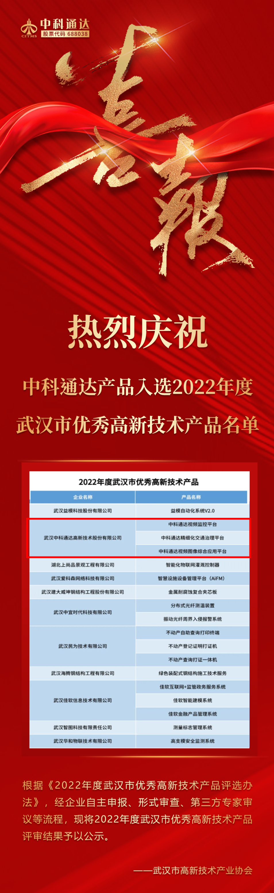 【企业快讯】热烈庆祝中科通达产品入选2022年度武汉市优秀高新技术产品名单