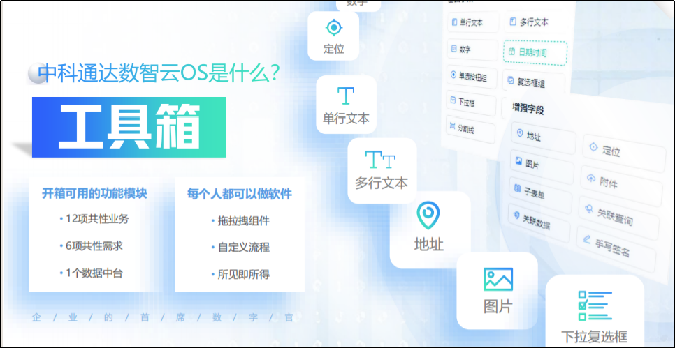 中科通达集16年公安信息化软件能力于一体,为企业数字化转型提供基础能力,沉淀出“数智云OS综合应用管理平台”。该平台以国产安全体系为基础,以数据服务、技术服务、集成服务、低/零代码工具、运维体系为依托,集业务中台、数据中台、技术中台、 AI 中台于一体,能为自身及企业用户提供简单、灵活、快捷、安全的“数智化+企业应用”的数字系统构建能力,加速企业数字化转型。