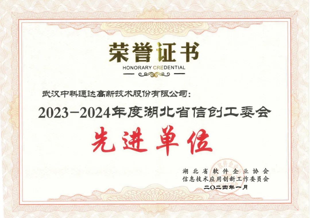 经资料审查、专家评审等工作流程,中科通达被授予“2023-2024年度湖北省信创工委会先进单位”,这是继获评“2022年度湖北省信创工委会先进单位”后,中科通达再获此殊荣。