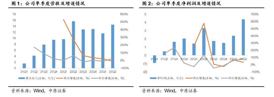 事件:近日公司发布2023年半年度报告,2023年上半年公司实现营收26.12亿元,同比+ 3.24%;归母净利润6.77亿元,同比+ 42.35%;扣非归母净利润6.19亿元,同比+42.00%。2023年第二季度单季度实现营收14.50亿元,同比-7.16%,环比+24.89%;归母净利润4.38亿元,同比+31.77%,环比+82.99%;扣非归母净利润4.28亿元,同比+42.03%,环比+124.92%。