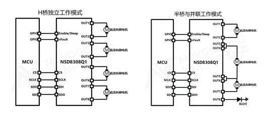 纳芯微多通道半桥驱动NSD8381支持多种马达工作模式: