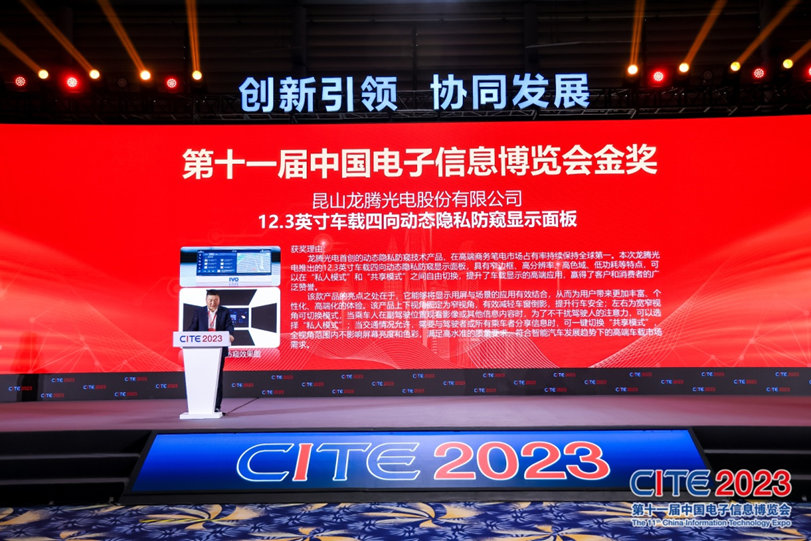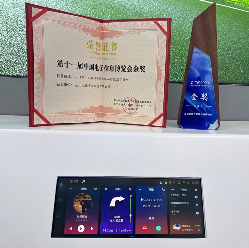 4月7日,第十一届中国电子信息博览会在深圳会展中心落下帷幕。昆山龙腾光电股份有限公司(股票代码:688055)凭借其卓越的技术实力,12.3英寸车载四向动态隐私防窥显示面板斩获了金奖荣誉。