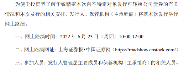 同日,华锐精密再发一则公告称,公司将于2022年6月23日(周四)10:00-12:00就本次发行举行网上路演,敬请广大投资者关注。