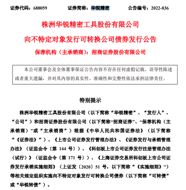 6月21日晚间,华锐精密发布公告称,公司拟公开发行可转换公司债券,本次拟发行可转债募集资金总额为人民币4亿元,发行数量为4000000张,每张面值为人民币100元,按面值发行,初始转股价格为130.910元/股。