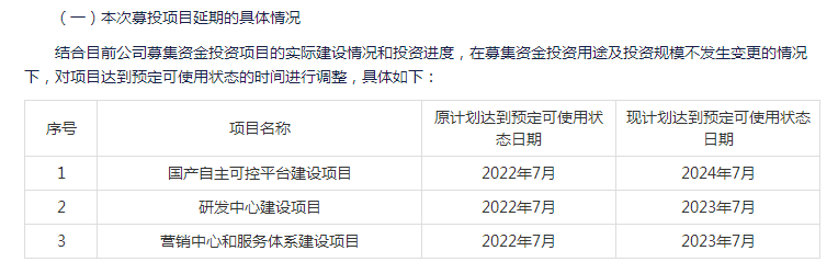 三个募投建设项目均延期