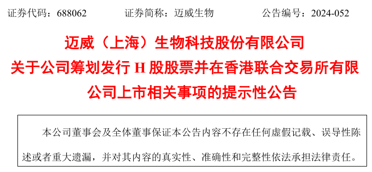 2024年12月16日,在全球化战略的推动下,迈威(上海)生物科技股份有限公司(以下简称“迈威生物”)宣布了其拟在境外发行股份(H股)并在香港联合交易所有限公司(以下简称“香港联交所”)主板上市的计划。这一重大举措标志着迈威生物在国际化道路上迈出了坚实的一步,同时也展现了公司对未来发展的坚定信心。