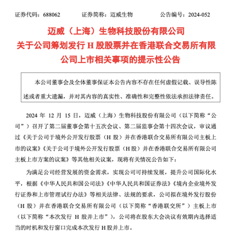 迈威生物的H股上市计划正值国家政策支持背景之下。