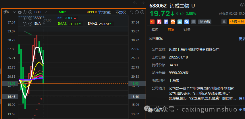 这操作,是不是有点眼熟?没错,A股IPO不好混了,卷得一批,审核也“特么”严了,不少药企就琢磨着换个赛道,去港股碰碰运气。迈威生物,2022年1.18日在科创板上市,现在在大A股都跌破发行价了。