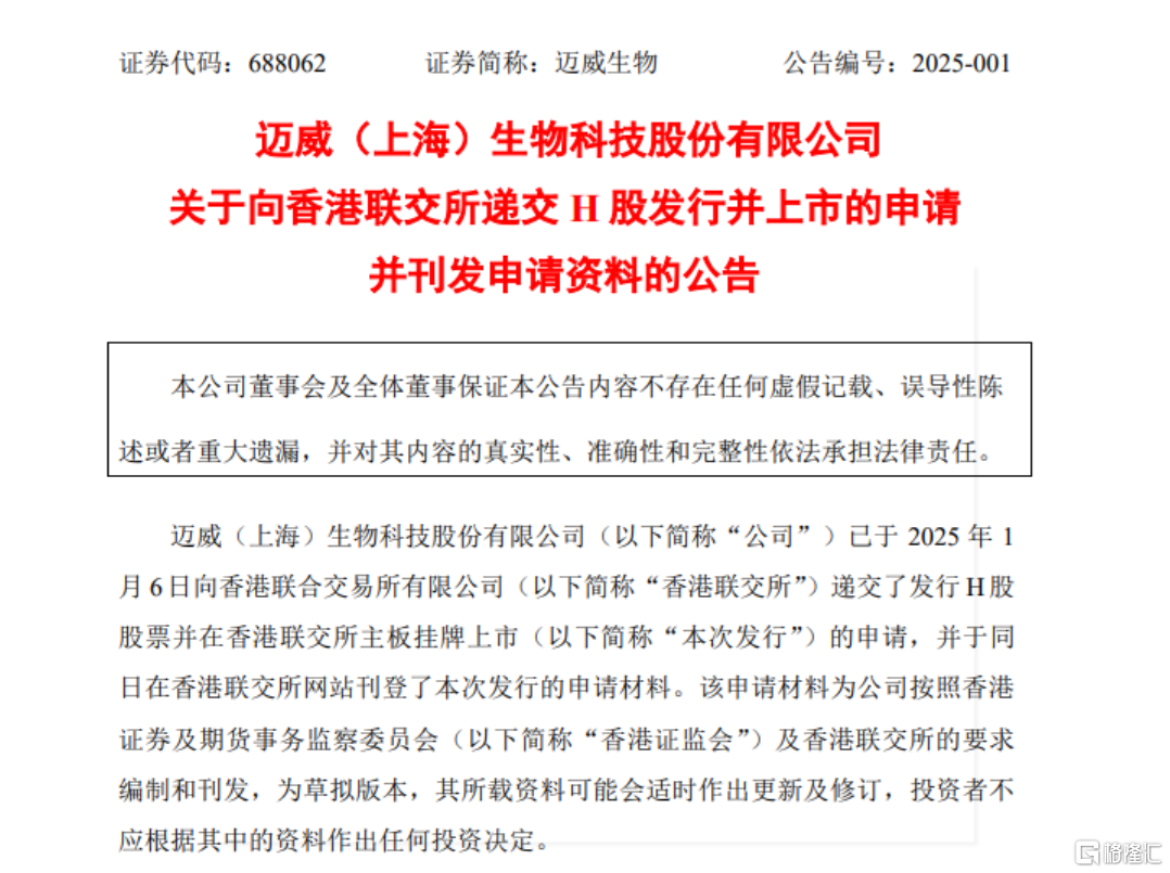 当下,迈威生物正在积极推进H股在中国香港联合交易所主板的发行与上市计划。早在1月6日,公司便正式向中国香港联交所递交了H股发行申请,旨在满足公司经营发展的资金需求,实现可持续发展并提升国际化水平。