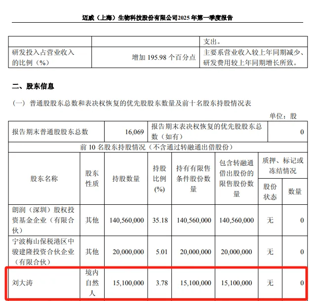 刘大涛,作为迈威生物的“70后”掌舵人,自2020年6月起担任公司总经理及董事长职务。其职业生涯中,曾在迈威生物的前身公司担任过总裁及董事、总经理等要职。2024年,刘大涛的税前年薪高达270.47万元,在公司董监高中排名第二。他还持有公司1510万股股份,占总股本的3.78%,是迈威生物的第三大股东。