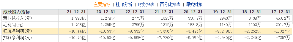 2017年至2023年,公司归属于上市公司股东的净利润分别为-1.03亿元、-2.25亿元、-9.28亿元、-6.43亿元、-7.70亿元、-9.55亿元、-10.53亿元。